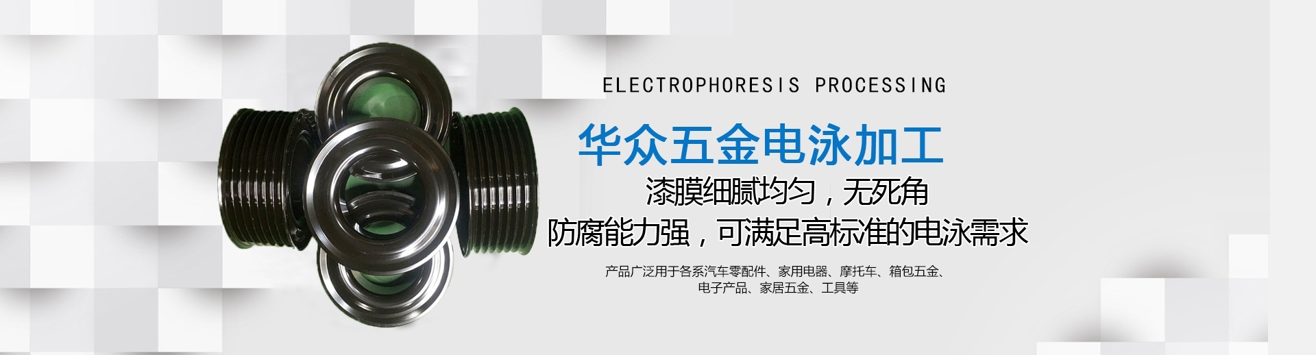 龍巖市華眾機械有限公司網站上線啦!!! 龍巖市華眾機械有限公司前身為龍巖市杰瑞特工貿有限公司,成立于2010年12月。新廠座落于福建省龍巖市新羅區東寶工業集中區,注冊資本500萬元,占地面積約27,000平方米,員工60多人 。公司擁有涂裝行業10年以上工作經驗的技術團隊。2018年8月經NSF-ISR評估獲得IATF16949質量管理體系認證通過并取得證書。 現專業致力于汽車零配件及五金制品的電泳加工及數車加工。